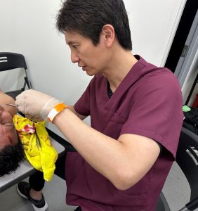 9/21に金城ふ頭のLives NAGOYAにおいてムエタイのイベントである「Suk Wanchai MuayThai Super Fight11」に大会ドクターとして参加してきました。このイベントは日本全国から、またムエタイの母国タイから強豪選手が招待されて試合が行われます。試合は本格的なムエタイなのでパンチ、キック、肘うち、膝蹴り、首をつかんでのとっ組み合いと、もはや何でもありの激しい格闘技です(関節技や寝技はありません)。大会のリングドクターとしてリングサイドに控えて選手のケガに対応するのですが、顔や頭の皮膚が裂け血まみれになっても試合が進みます。3分3R制なので試合時間は短いのですが、その分全力で選手がぶつかり戦うので試合後は「ここまでやるか」と医師である自分がひくほど凄惨な状況になることもあります。何人も控室に運ばれてはせっせと縫合処置をしていました。準備してある針や麻酔薬などの医療材料が無くなるんじゃないかと思い冷や冷やしました…
